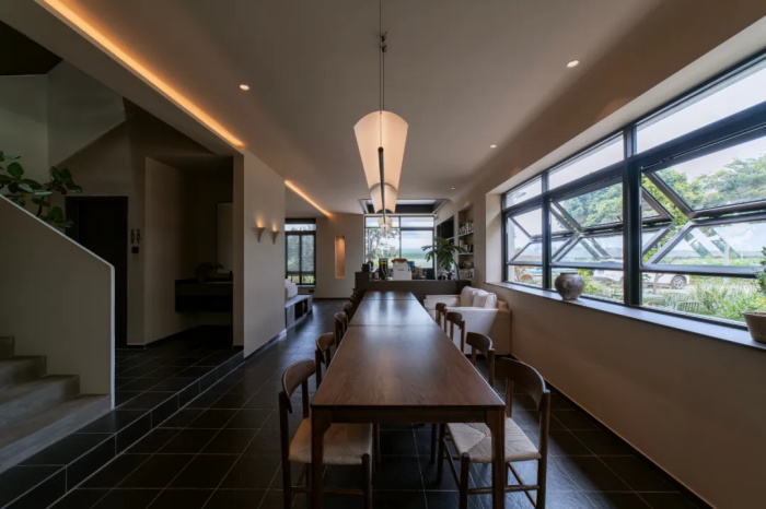 在整体设计中,我们最大限度地利用现有建筑结构,在不拆除的条件下,探索乡村农宅如何以更“节约”的方式实现更新。通过轻量构建内部空间体验,我们将抚仙湖天然无雕饰的景观引入居住空间,让客人在室内外都能感受到自然与建筑的和谐共生。我们的设计在一定程度上不仅实现了农村民宅到民宿功能的转型,更赋予了建筑新的生命力,使其成为连接传统与现代、人与自然的载体。