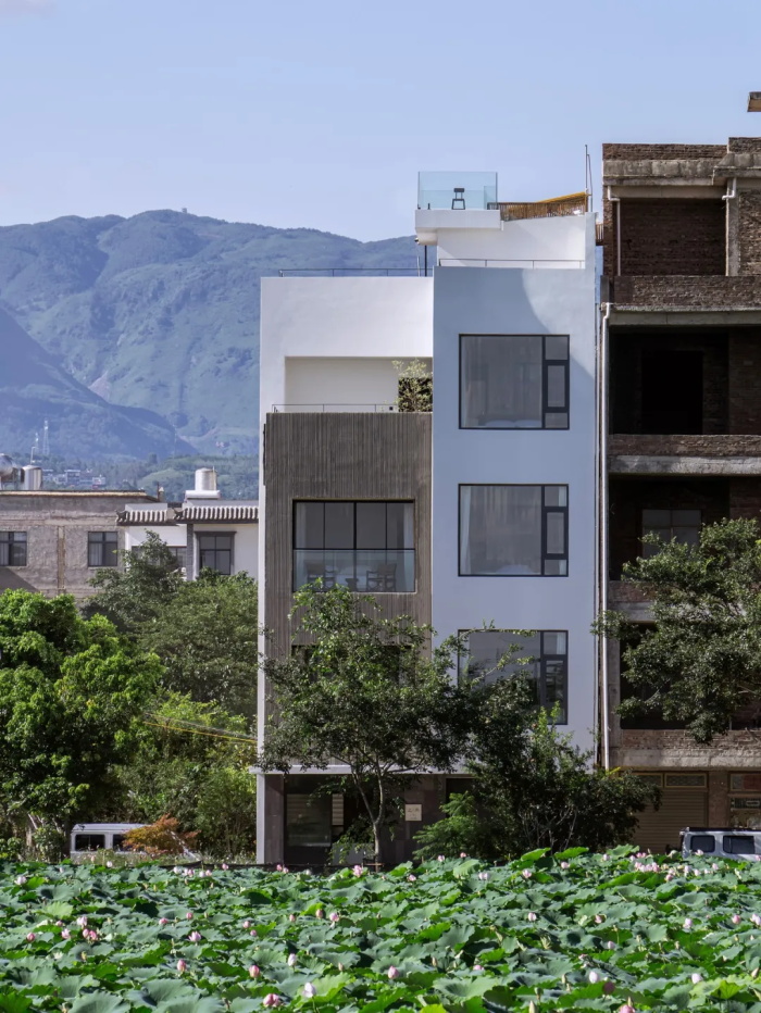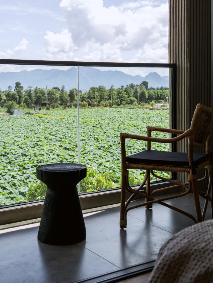 之外民宿坐落于云南省澄江市抚仙湖畔的洋潦营村边缘,东侧毗邻广阔的荷花田,西侧则与村落建筑肌理自然融合,屋顶视野开阔,可远眺抚仙湖的碧波与周边连绵起伏的群山。在这片悠闲的田园风光中,时间仿佛也悄然放缓。