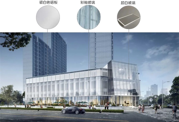 设置于鹿苑大道交界处的展示区毗邻城市转角展示面与社区主入口成为项目对内对外重要空间节点,是塑造具有区域昭示性的城市形象重要片段。设计思路围绕着“站在城市中轴上的新都市生活”展开,更充分彰显设计师“再塑雅韵”的理念。