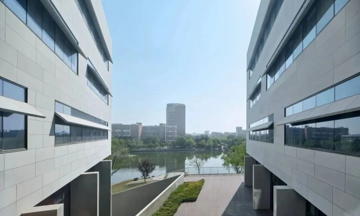 “以学生为本”作为当代高校重要发展理念的形势下,学生中心成为近年来高校建设一个新的重要类型,这是一个位于校园边缘的建筑,项目原本并不在最初的校园规划中,只能应时选中一块基地,南北长东西窄,西侧已经贴临校园的边界,背靠城市高速干道,而东边则紧邻景观湖面,绿色亲水。相对于教学科研等功能建筑充足整齐的用地,这个基地具有某种天然的“边缘”属性。如何回应这个“边缘”地带的特质,发掘其内在潜力成为设计的关键。