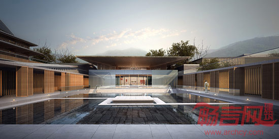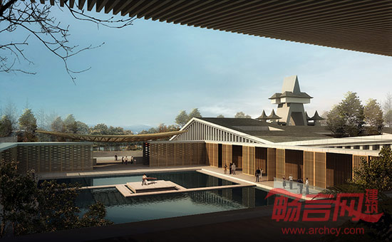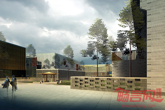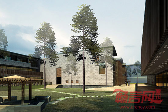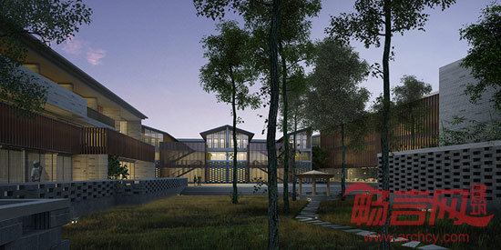 设计考虑基地缓坡和天然楠木林,依山就势、山水相依的自然条件,采用了规则结合散漫,具有园林内在秩序和自由院落式布局。建筑拾阶而上,高低错落;群体组合因地制宜,既追求规整有序、区分明确,又较灵活多样。通过庭院天井的空间组合,达到以和至亲的目的;以此形成一个和序统一的整体。