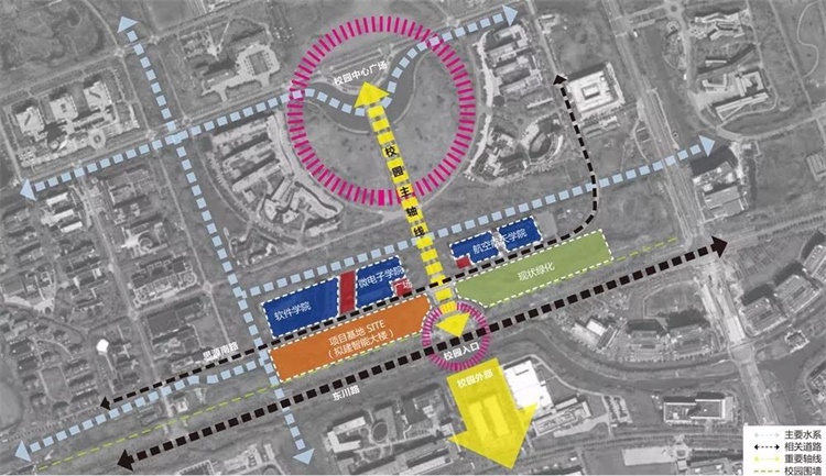 上海交通大学新建闵行校区智能大楼坐落于闵行校区南校门(凯旋门)西翼,是校园入口节点的重要门户形象建筑,主要用于电信学院创新创业实践平台、科研平台(人工智能研究院、国家、教育部及上海市重点实验室等)和公共服务测试平台,旨在为上交大建设“世界一流大学”打造一流科研实验平台。
