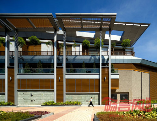 吕元祥建筑师事务所的设计师采用绿色地毯斜坡围绕综合大楼,引导公众由游乐场途经户外进入綠化平台看台。大楼建筑综合利用光伏电池、太阳能管、太阳能芯片及建筑朝向等设计手法,成功达致香港建筑环境评估组织的金级标准。