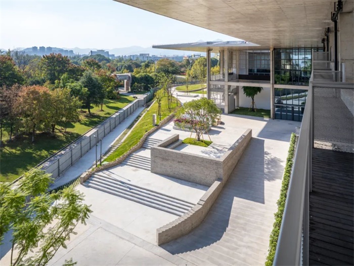 项目所在地温州,顾名思义,是一个气候温和的城市。我们由此想到,人和自然之间建立更亲密的关系,即较多地在户外活动和生活,在这里是否更具备实现的条件?气候的考虑成为了设计温州医科大学国际交流中心的起点。具体项目用地的周围被绵延的树冠环绕,环境优美。