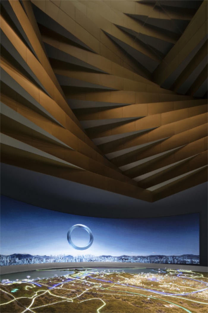 在过去传统的展览中心一般设计为环绕形动线或强制性单一动线。往往将装饰性的庭院或模型台作为重点放在空间中心位置,整体的流线也是成直线型的,空间连接不紧密。
