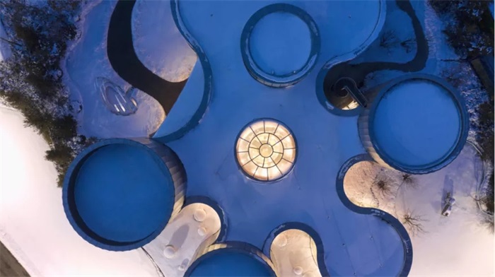在每个外围体量之间,我们打造了一个户外空间,这使得景观可以融入建筑中,并将景观和日光引入中心空间。直观感受空间与非直观感受空间在这个建筑中融为一体。就如同雪晶结构,其实体与镂空的部分相辅相成才能形成最终这一个完整的图案。同样的在这个建筑中,侧面的景观区,也成为整个展览空间的一部分。