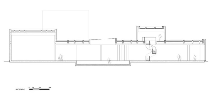 建筑的形态同样也影响着访问者的参观动线,利用光影的动态关系去赋予空间另一层韵律。参观者进入和离开每个空间的路径,都好似光线在做着忽明忽暗的流动舞蹈,每当人们离开一个空间前往中心区域时,都会拥有全新的视野。
