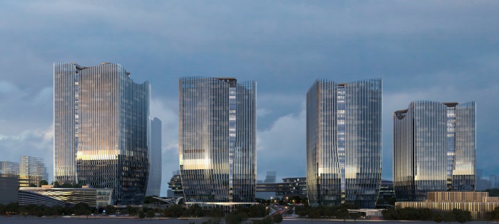 四座塔楼被设计成一个富有生命力的活体景观,犹如植被般向上生长。同时,建筑外立面的设计就像植物那样,着重强调同样的设计理念,并将建筑包裹起来,通过材料的金属质感传达出未来主义的既视感。通过参数化设计方法,外立面上的装饰翼以不同的深度排列,以反映内部的功能变化,视线的需求,并起到自我遮阳的作用。