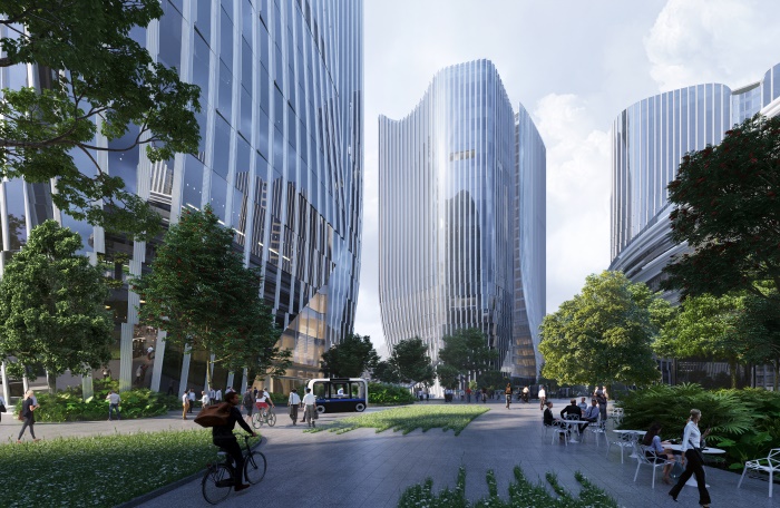 早在 2020 年,NBBJ 被选为占地 200 万平方米的腾讯深圳前海总部园区项目(网络城市)整体规划的中标者。从那时起,NBBJ 的名字就与这个以人为本的园区紧密联系在一起,由此产生的规划为后续一系列的设计工作提供了总体指导。