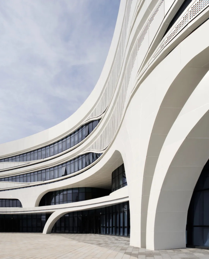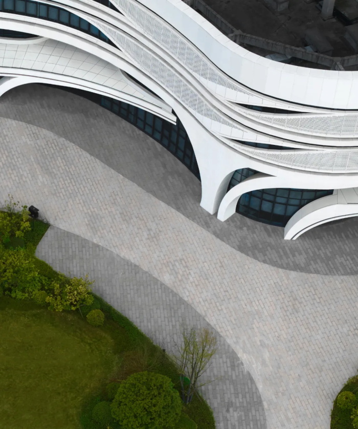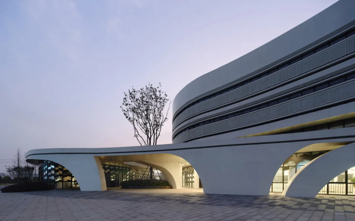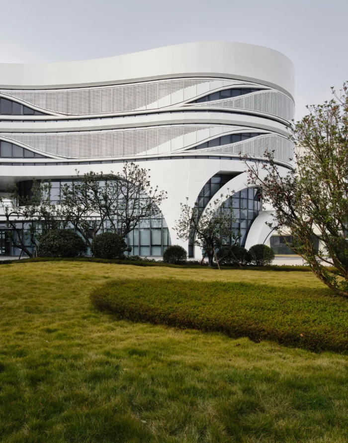 园区已有的四栋建筑全部为有机自由的形态。国家种业重点实验室的设计充分尊重已有园区现状和空间特征,用自然有机的曲线构建内外空间,突出种业科技与生态的特色主题,与已建建筑形成有机整体,同时融入广袤无垠、充满希望的田野。新建建筑充分考虑园区整体空间秩序,结合已建建筑,进行空间组织:与东面的检测中心呼应,向南侧打开,形成整个园区迎宾性质的南入口;与北面的农业工坊形成首尾相连的趋势,完善园区空间形态;同时在东侧留出入口广场,缝合园区多样有机、相对复杂的空间形态,与已有建筑形成有机的对话关系。