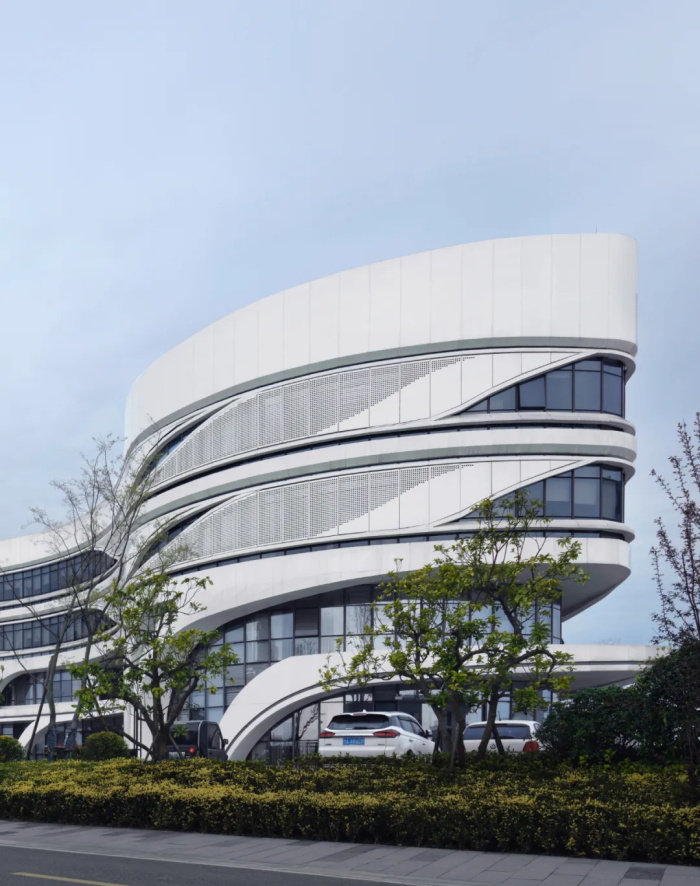 建筑的功能满足西南作物基因资源发掘与利用国家重点实验室的需要,结合作物优异基因资源发掘、作物与有害生物互作、作物环境响应与生理、作物种质创新与品种设计四个研究方向,灵活划分空间。单向曲线的实验空间组织清晰高效,立体丰富的共享空间纯净简洁,为科学家带来健康舒适、绿色宜人的工作环境。报告厅与国重实验室之间的半室外灰空间,同样运用有机弧线的建筑语言,将建筑的板柱进行重塑,使为科学家塑造的交往休憩空间变得灵动活泼,种业特色突出、有趣。在这里,可以链接童话世界与现实世界,将人带入仿佛爱丽丝漫游奇境的小小童话世界中,与种子一起萌芽,成长。建筑形态的打造同样将春天生命的孕育与流动的大地的主题贯穿其中,生态有机地将园林与建筑渗透交融,创造富有种业科技特征的、浪漫有趣的个性化科研建筑。