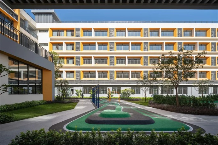 建筑在设计上体现华东师范大学的名校附属办学理念和办学特点,结合佛山本土化的岭南建筑风格和细部,展示对当地人文气息的重视和人才培养。