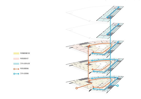 市民服务中心内部流线及功能分析图