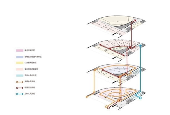 文化馆内部流线及功能分析图