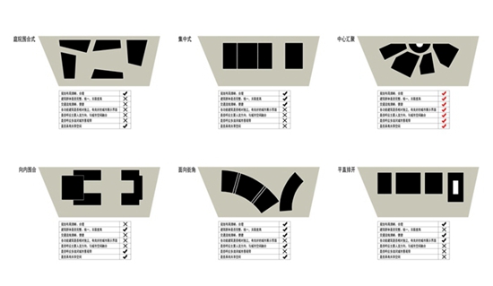 围合型、2U相对型、一线展开型、面向街角型和中心汇聚型