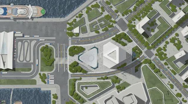 项目位于青岛港6号码头中心,毗邻新建邮轮母港旅客运输中心,与该中心共同构成青岛港的建筑地标。