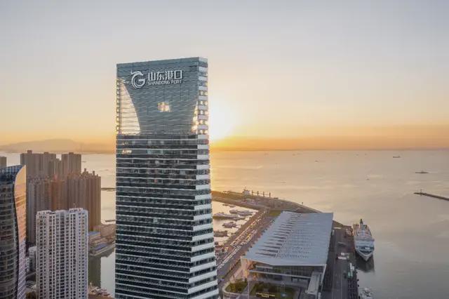为了打造独特而一致的建筑形体,山东港口大厦的设计方案采用了独特的曲线形体,取风帆为灵感,挺拔向上的曲线与新近建成的邮轮母港码头相得益彰。竖向拔起的总部大楼延续了邮轮母港码头相同建筑轴线。所有金属构件均采用白色,在蓝天碧水的映衬下,展示出白帆和轮船的经典形象,构成了因青岛承办奥运帆船项目而令人难忘的经典滨海画面。