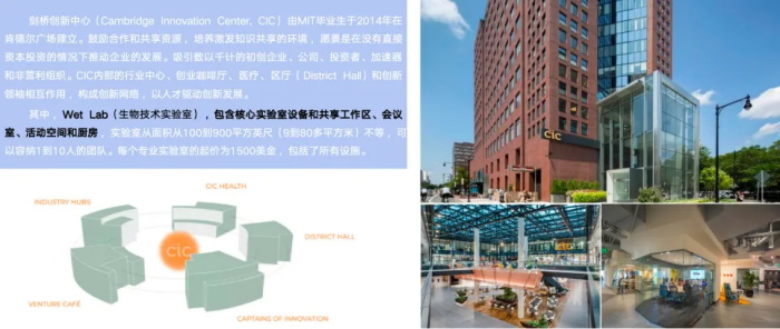 依托麻省理工与哈佛的产学研网络,肯德尔广场已成为全球医药创新企业最密集地区。剑桥创新中心(CIC)整合行业中心、创业咖啡厅、医疗、公共区厅与创新领袖互动空间,打造开放共享的创业生态。Wet Lab 提供全套实验设施与灵活面积,低门槛支持科研型企业快速起步。