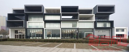 建筑外观由许多单独的管子叠加而成。它由白色、浅灰色、深灰色和黑色四种颜色的管子组成。这些管子不断地重叠、累加,形成了凹凸感。