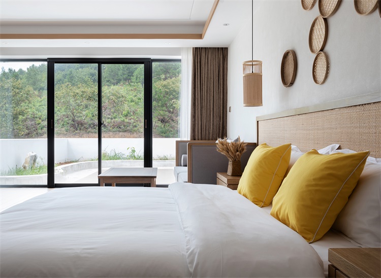 The design team chooses the “stepped construction in set-back mode” as the basic architectural form: The roof of the lower floor serves as the upper room’s outdoor terrace, so that each guest room is endowed with its independent “hanging garden”, which enriches the accommodation experience. As for the guest rooms, through scattered stacking up of the modularized function units like toy bricks, a rhythmical spatial sequence is takes shape, which, meanwhile, maximizes the viewing sides to the west and the south. At the same time, the traffic organization and the para-position of the pipelines with the structure must be guaranteed, to ensure the realization of the architecture in rural context. As for the outdoor set-back terraces, the design team deliberately stagger them on each floor plan, in order to match the protruding corners of the upper architectural contour with the concave corners of the lower one, in which way a relatively individual outdoor space for activities is formed on the same floor plan and the privacy of the guests is protected.