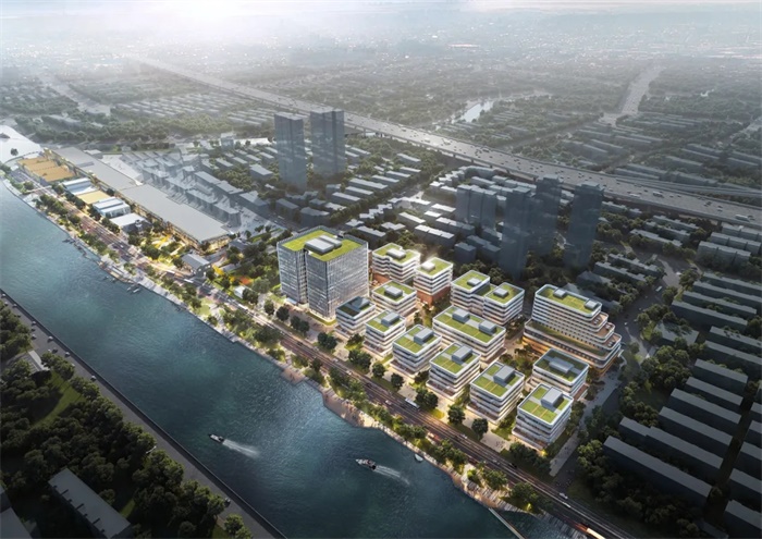 不仅仅是考虑企业办公和科研需求,还着重打造了商业和生活设施。作为产业和城市更新的双重示范,通过10公里的滨水步道将两者有机串联,形成“超级街区”,为工作、生活和休闲提供有机结合的场所。