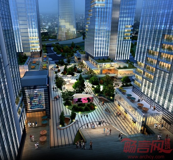 “坡地景观公园”是一条与“云空间”垂直的位于71米标高处的开放式公园,它与各办公楼宇之间是一种开放式的联系,让整个景观资源融入到每一栋办公大楼,办公大楼的入口大厅是一个全开放式的设计,使在此处工作的人能更多的感受自然新颖的空间场所。坡地景观公园与低区办公是一种立体化的联系,为的是将人流可以更好的导入每一个公共性办公区域。错落有致的平台,宽敞的休闲步道,开放的运动设施,精致独特的公共空间,让工作在此的人群享受到了一种愉快、舒适的工作环境。