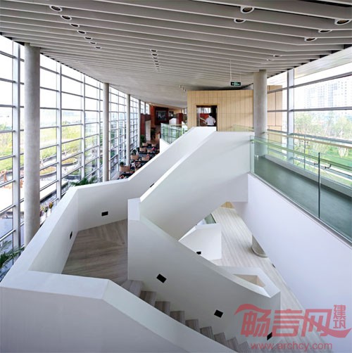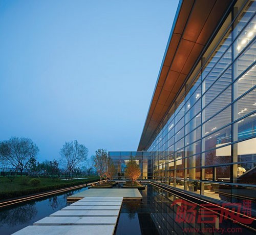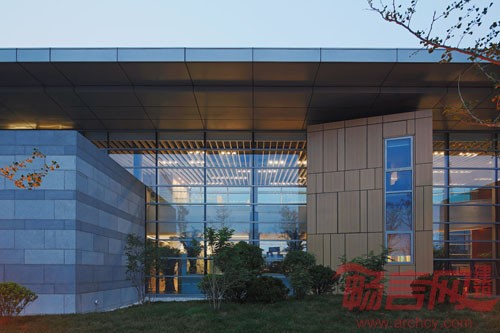 根据售楼处不同功能空间的自身特点,配置予最适当的空间体量和材料质感,形成若干“梦想盒子”;并用透明的玻璃盒子将它们按流线串联,使得城市公园的绿色景观得以最大化地渗入建筑内部,使建筑融入自然。