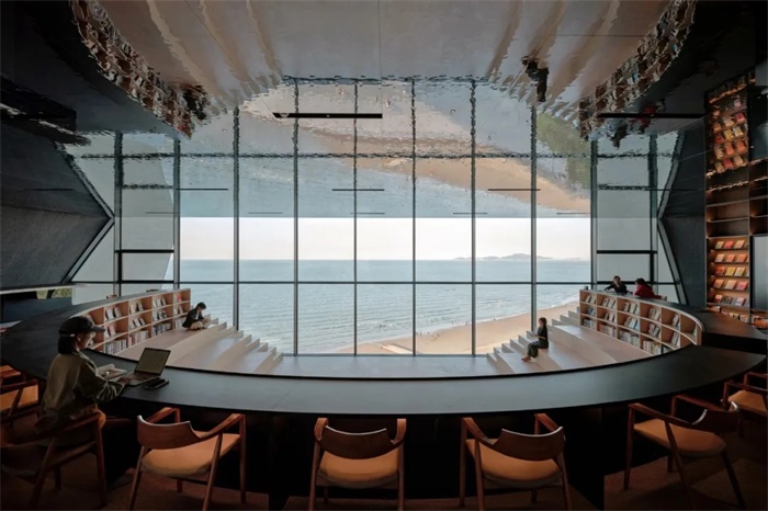 由OPEN建筑事务所设计的时光塔于2024年9月落成,并在10月1日正式向公众开放。项目位于山东烟台黄渤海新区金沙滩海边,是一座多功能的公共文化建筑,包括室外剧场、空中图书馆、数字展廊、咖啡休闲等功能,顶部还有一个独特的半室外“现象空间”。