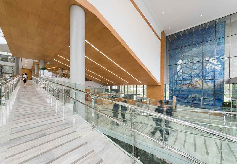 Perkins+Will 在设计过程中积极施展可持续性方面的专长,在创造建筑视觉美的同时,也将绿色永续的策略融入其中。利用屋顶花园对雨水进行收集再利用。运用水景为室外的花园庭院提供蒸发制冷,同时采用地热系统对建筑进行采暖制冷。利用被动和主动相结合的方式进行遮阳,选用高效能玻璃实现最大限度的节能。使用掺加粉煤灰的结构混凝土为建筑节能。本项目还将太阳能板、光伏板、天窗、高节能型灯具、低量冲水洁具等结合到建筑中来。还利用自动可开启窗在夜间为室内进行自然换气通风。