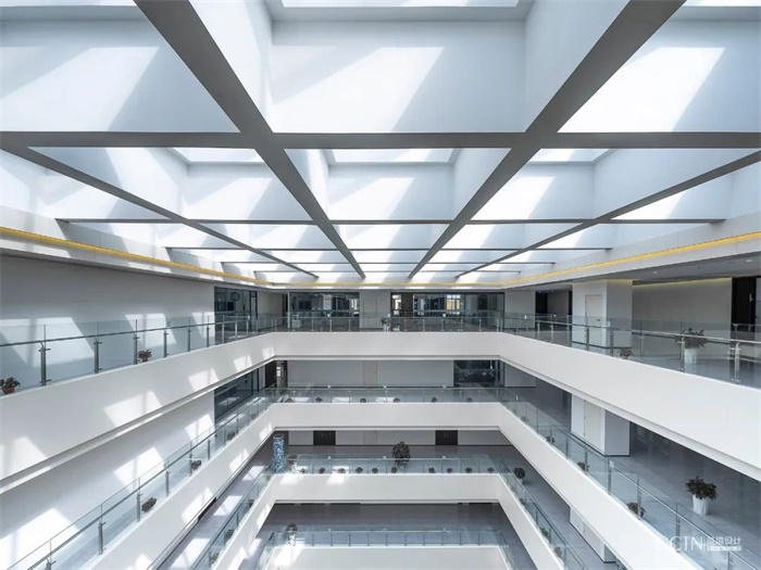 四层及以上塔楼均以行政办公、各研究所办公、小会议、活动交流室、茶水间等功能,围绕通透的中庭布置,采光充足并富有围合感。