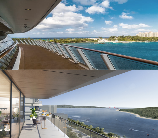 住宅塔楼立面运用铝板材质,映照周围海天一色,整体设计着重针对观景角度调整,满足围合感的同时,减少户与户之间视野阻挡,确保每户均可观景,打造高品质江景住宅。塔冠的观景台设计别具匠心,可一览江河全景,丰富住宅体验,将功能最大化。双栋公寓享受一线江景的同时延续邮轮设计概念,超大平层阳台犹如邮轮甲板,入身临其境般置身于大海中,零距离体验视觉饕餮。