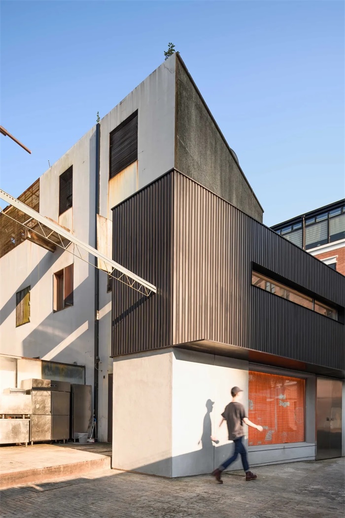 在材料的选择上,建筑师从周边环境中提取出折叠铝板、水泥材质和色彩元素,将过往的时间以材料的形式凝固。新老材料的直接对比,加大过去和现在之间的距离感,反衬出场地之间的时间流动,历史成为一个背景化的封闭场所。