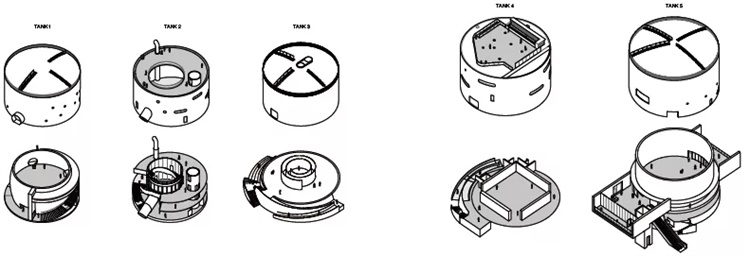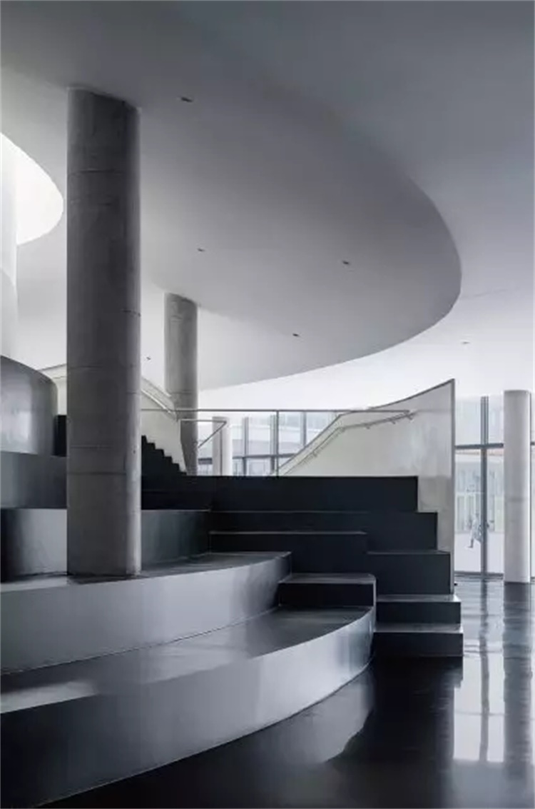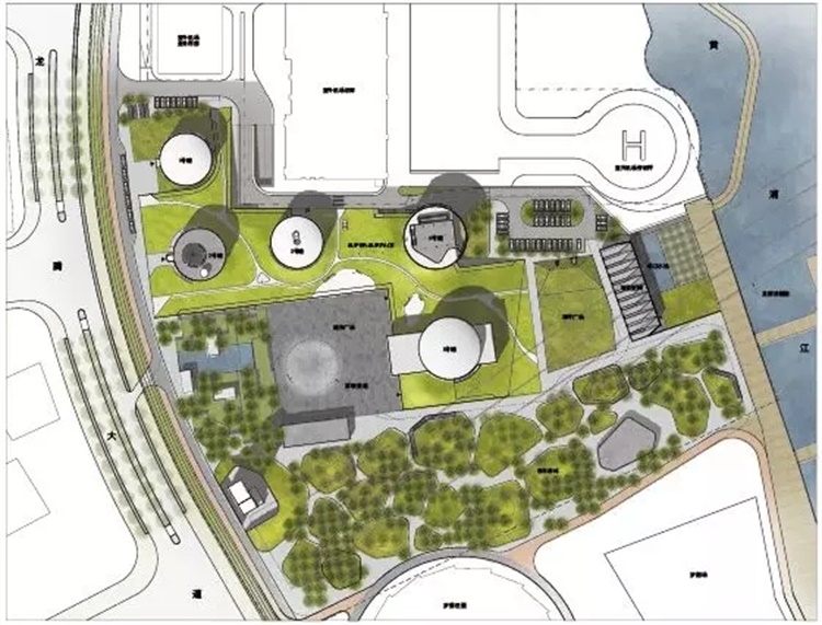 在功能上,3号罐内部不做任何划分,建筑师仅仅在其“穹顶”中央切割出一个圆洞,来形成万神庙般的光影变幻。这一尺度巨大的原工业空间主要将用于展示大型装置艺术。4号罐则被划为三层,底部两层主要为适于展示架上绘画作品及小型装置作品的“白盒子”空间,顶层则作为艺术中心的办公及会客使用,并设置可观江景的屋顶平台。5号罐由一层较高的多功能大型展厅及一层较低的小型展厅组成,相对更为封闭,适宜于新媒体艺术的展示和小型表演。