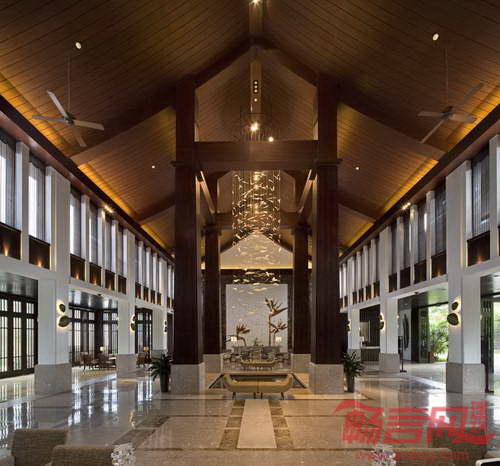 拥有一个非常独特的标志性建筑是业主和建筑师一致的共识。业主要求建筑必须带有当地地域特征,由于海南并没有特殊的传统建筑,因此只能使人联想起中国或是巴厘岛的传统建筑环境,但无论何种建筑主题都已经过无数次的反复利用,任何再创造新尝试的结果都很可能变得俗气、矫情。为了应对这个问题,建筑师对中国具有代表性的住宅进行解构,在保持环境尺度的同时,将其组成元素以现代的方式进行重组,对一些独特的细节比如屋顶,进行分析并加入特别的元素发展,创造出令人过目难忘的效果。