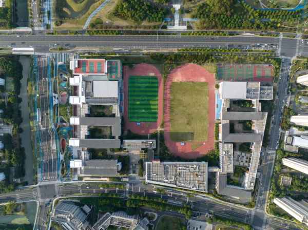本项目是一个在互动中越做越“复杂”的项目 —— 建筑师在不断的协调与整合中,推动城市空间与教育空间的共同更新。是一次建筑师对城市建筑更新需求的主动介入与综合解决的过程。项目所在地块呈狭长形态,东侧是昆山实验小学,西侧紧邻昆山工业技术研究院,南北两端连接大渔湖公园与森林公园两大城市绿地。