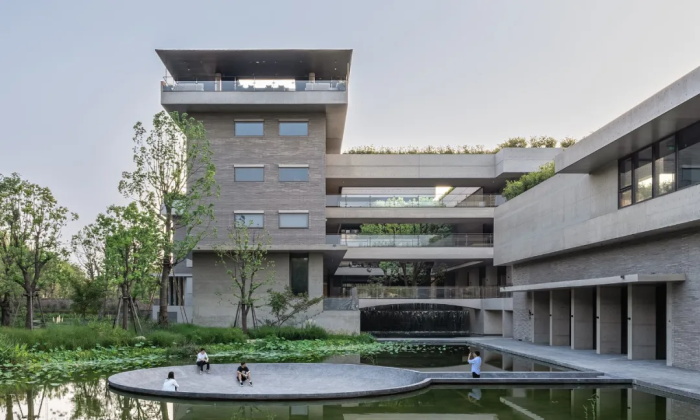 建筑底层的室外游廊系统一共串联着九个院子,由西向东延伸,根据氛围对应不同的自然主题,构成群院格局中多个带有鲜明特征的节点。