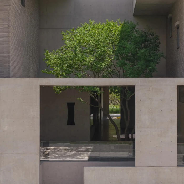 在我们的构想中,每一个院子就是一个“小的世界” —— 各自拥有不同的光、风、尺度、景和氛围。空间界面和自然光的明暗组织调动身体的游走,视野角度随之变换,在若干个“小的世界”之间创造出了一种复杂的关系,像是蒙太奇般的空间切换。日常光线被引入西侧的廊院,在地面层营造出多个近人尺度的花园。