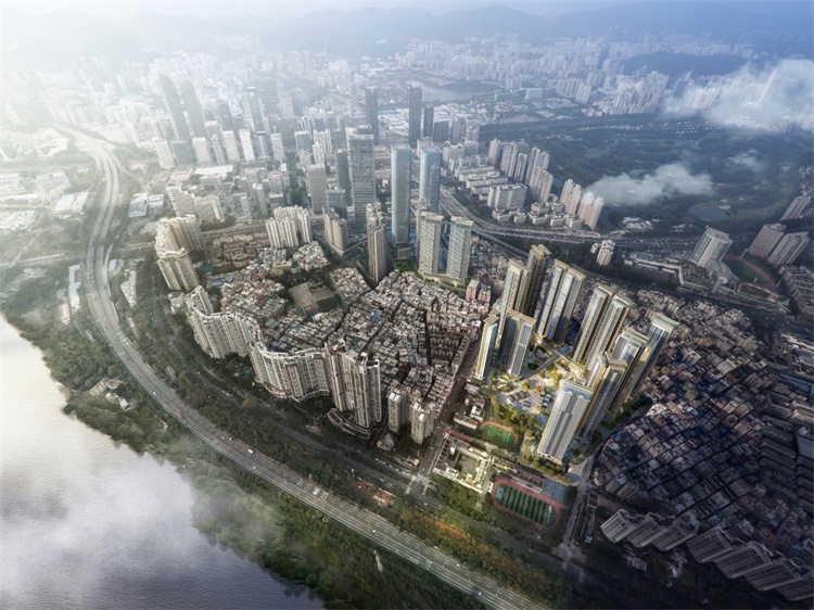 由Aedas设计的中洲湾 C FutureCity是迄今为止深圳市中心最大的城市改造与更新项目,它所在的福田区上沙村八年前还是个街道狭窄、楼群拥挤、人口密度极高的城中村,如今已可以窥见它2023年竣工完成后美丽便捷的未来新城市模样,而这也将是提升上沙村经济价值与城市定位的开始。