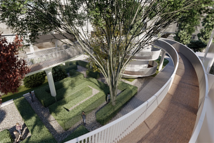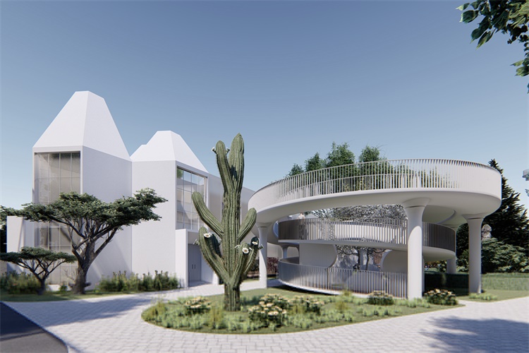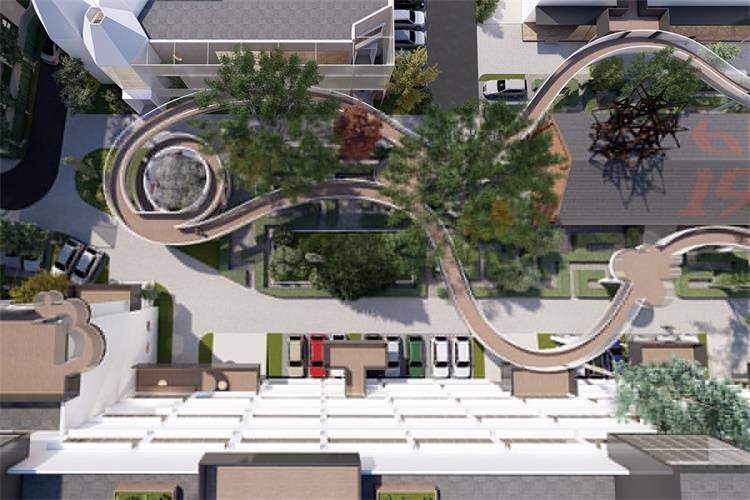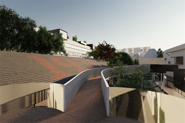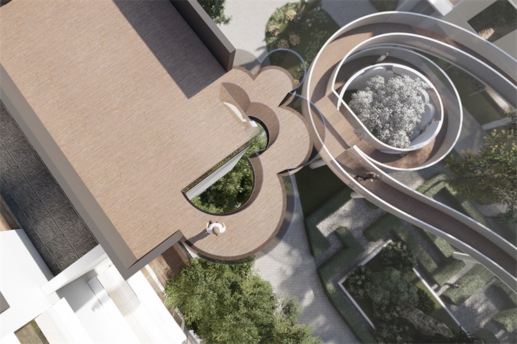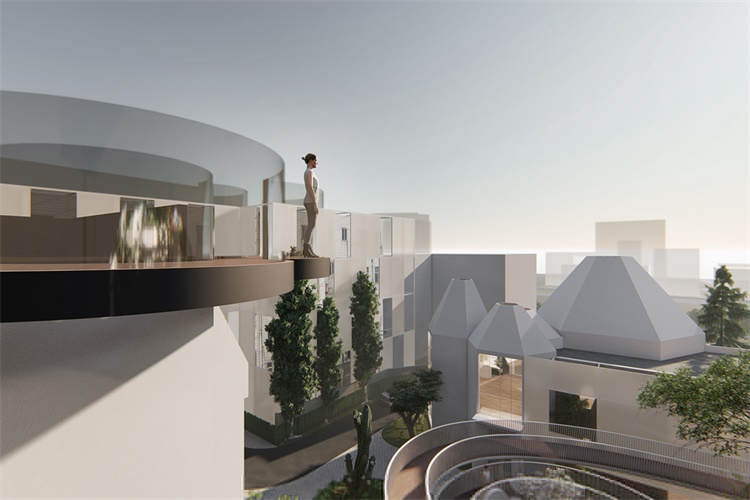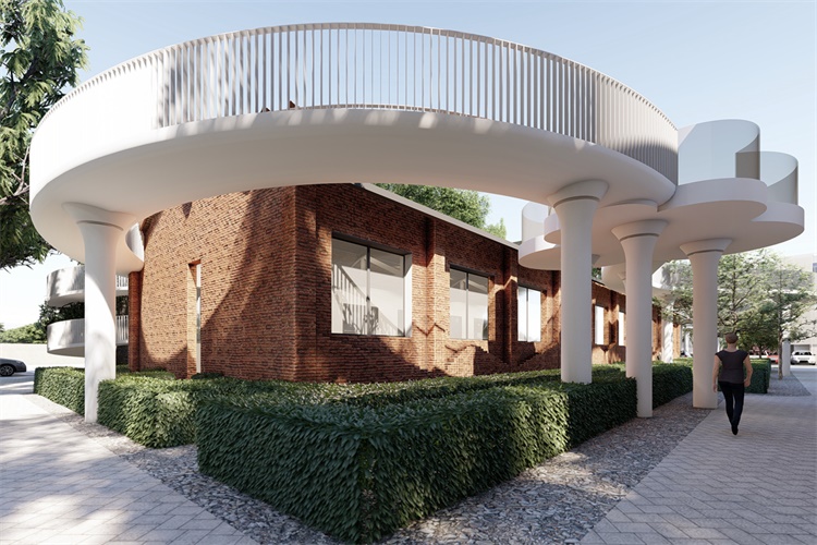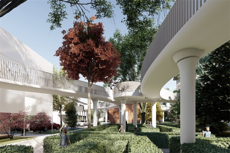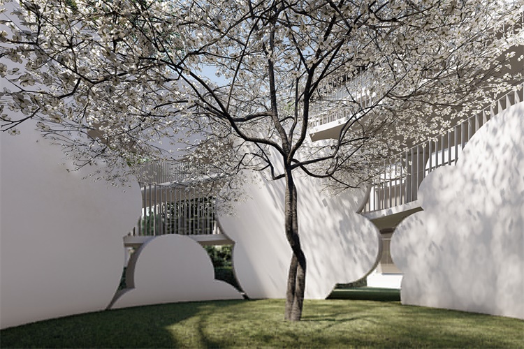 建筑的“新”根植于一种相对于“旧”的诗意重组,飘动的云廊自由的出现于原本坚硬和肃穆的建筑体间,让人的脚步脱离地面的束缚,展开一个在时间和空间中的浪漫旅程。