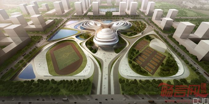 因此传统的较为单一的体育建筑风格显得不合适。多数的体育建筑都予人庞大又粗犷的感受,在此我们期待一种文化建筑与体育建筑之间的互融状态,将文化建筑的亲民性带入体育建筑中,以一种更开放更迎人的姿态展现出来。