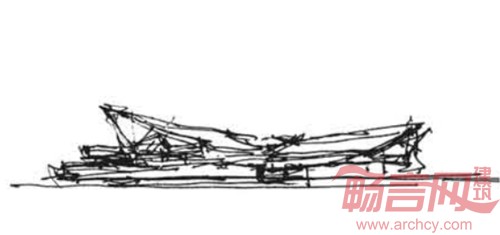 高低起伏的四块巨石顺应场地的高差关系,缓慢舒展,延伸到各个不同方向,提供丰富的景观面。办公后勤等内部使用功能置于场地的西侧,流线便捷独立。