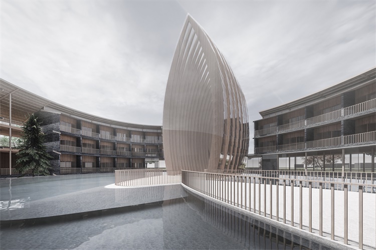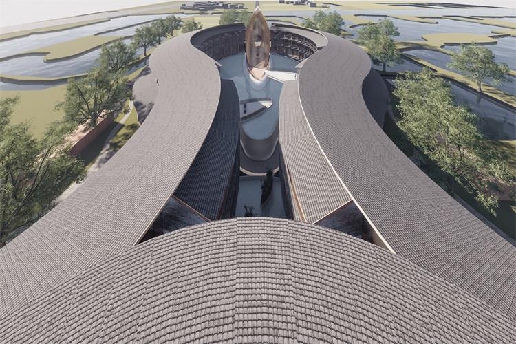 乡村,一直是维系中国社会发展的重要基石。在由农业社会向工业社会转变的过程中,乡村的角色也在发生着巨大的变化。建筑的诞生,恰巧处于这种宏大变革的过程当中,必然承担起联系乡村过往和未来的历史重任。我们选择了一种在地的构成策略,运用曲线的形态,自然的要素,乡间的材料,来构造一个可以承载未来,属于大地的新建筑。