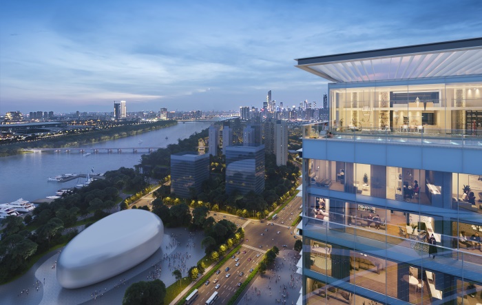 NBBJ 对盛行风和遮阳进行了可持续研究与分析,并最大限度地利用面向河流的露台实现公众参与,在此基础之上,NBBJ 推出了设计方案 "The Turn(华丽转身)",这与时装表演模特在舞台上360 度旋转展示服装的神奇瞬间产生了共鸣。