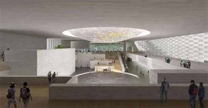 改造提升设计以“最小干预”为原则,将博物馆全部至于原有台地一侧,以巍峨的形象横亘在原有台地裂痕处,以建筑修复山体,将自然融入建筑空间之中。面向入口方向展开立面画卷,最大化地预留出广场组织游客休闲活动及室外展览,使博物馆不仅成为展示长城文化的殿堂,更是游客来到八达岭的第一站——长城客厅。
