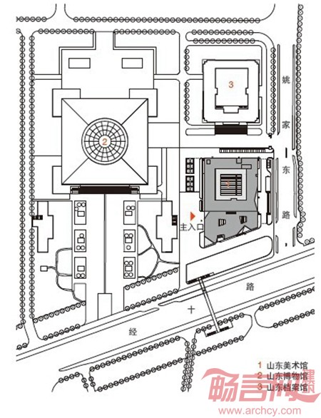 山东省美术馆是我国目前在建的最大规模的现代艺术博物馆。建筑创作植根于特定的场地条件和齐鲁大地深厚的历史人文内涵,以相互交融、对比统一的状态巧妙回应了复杂的功能要求。建筑形体呈现为正在渐变中的形态——“山、城相依”,具有山型特征的建筑形体逐渐过渡到方整规则的状态是对山东的风土地理特征最恰当的诠释。自然与人工,无序与有序,它反映了内部公共空间的状态,也反映了不同类型展览空间的并置关系。作为对设计概念的深化补充,公共空间的自然采光与空间布局紧密结合,呈现出有机错落的形态特征,暗示了遍布济南全城的泉池布局,烘托出“泉、城相映”的深层内涵。
