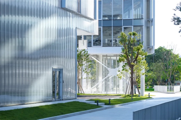 项目的设计灵感来自制造业的核心组件——电动机,它将电能转化为动能,是驱动交通、工业、科技等现代社会的关键设备。泰瑞员工的日常协同工作,如同粒子在园区内不断流动、交换,为泰瑞产品提供源源不断的能量。