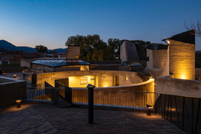 设计延续村落街巷肌理,由多个较小体量沿基地周边布置,以向心围合、向上拓展的动线组织,形成可栖、可聚,可游的立体流动空间系统,在较小的规模中营造了由中心庭院、屋顶平台、室内街巷等组成的共生交融的丰富场所。