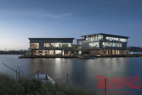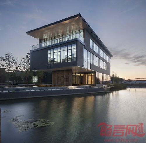 对空间层次和空间尺度的把握,建筑与水的关系的处理,无边际人工水面和自然湖面的一体融合。