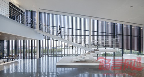 售楼处和办公楼均临水而建,为了达到轻盈和通透的建筑风格,在施工图设计阶段对建筑的檐口、开窗和外墙的尺寸、节点大样做了局部模型进行了反复地推敲和设计。同时为了和建筑的风格一致,售楼处的室内楼梯也力求做到轻盈、简洁,在施工图设计阶段和结构工程师一起反复推敲各构件的尺寸及细部做法。达到了室内外统一的设计风格。