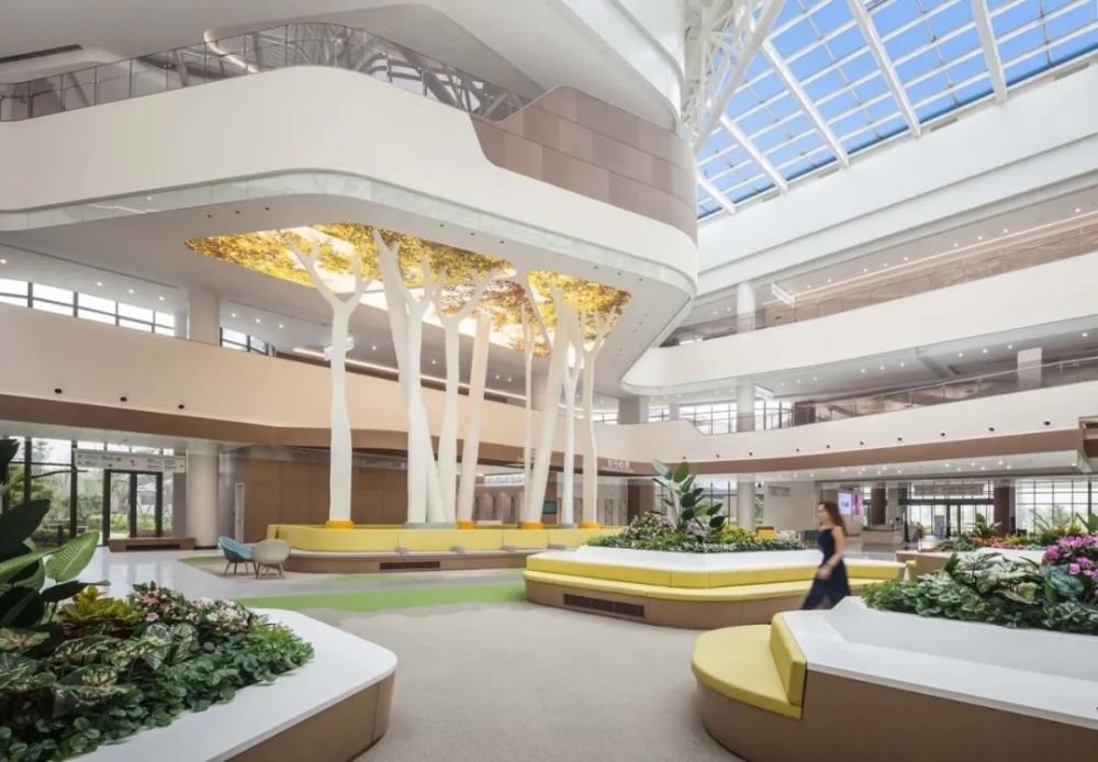 500床位的嘉兴凯宜医院位于浙江省嘉兴市经济技术开发区内,为当地打造了一个医疗设施的新标杆。建筑面积110000㎡。进入医院大厅,人们首先会来到一个采光充足、通风良好的中庭。设计受中国传统院落启发,采用基础的布局,将医院的核心功能区布置在采光充足的中庭周围,不仅优化了动线,还缩短了医院各部门间的移动距离,为患者与访客提供更加简单明了的导视标识。
